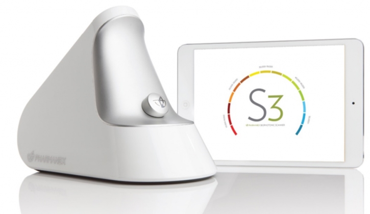 je jedinečný nástroj, ktorý meria hladiny karotenoidov neinvazívnou metódou v kožných tkanivách pomocou uznávanej technológie Ramanovej spektroskopie. Jednoduchým položením dlane vašej ruky pred bezpečné nízkoenergetické modré svetlo skenera získate v priebehu pár sekúnd hodnotu hladiny karotenoidov (SCS) vo vašej koži.